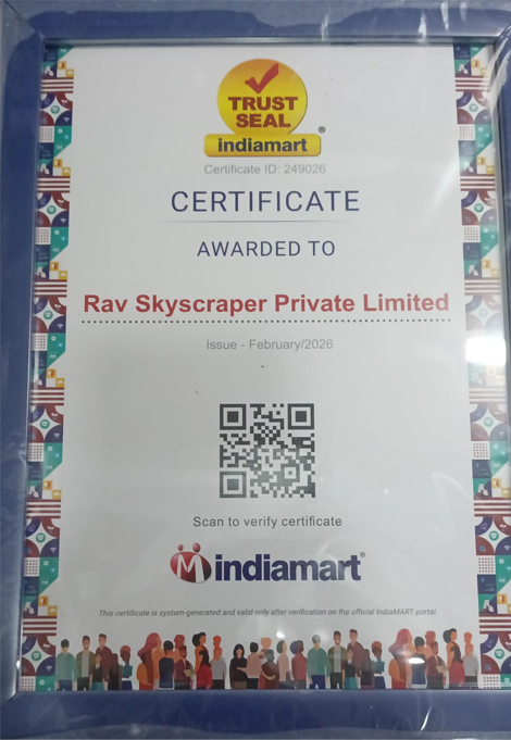 Acknowledgement is the biggest reward for exemplary services. RAV Skyscraper is not just a name but also the benchmark of success. India MART, the leading online marketplace in India, duly recognizes and awards RAV Skyscraper for this recent journey.